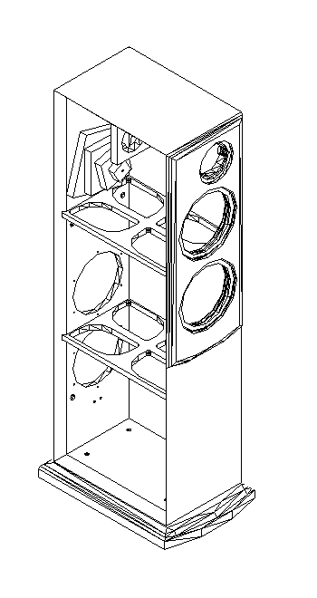 - The high woofer's naturally rising response is intentionally not tilted back to level. (Refer to the specs page, blue curve.) Instead, the low woofer (brown curve) is used to fill in the lower half of the midrange, where the high woofer is lacking. Acoustically, the two woofers sum similar to a first order crossover.
